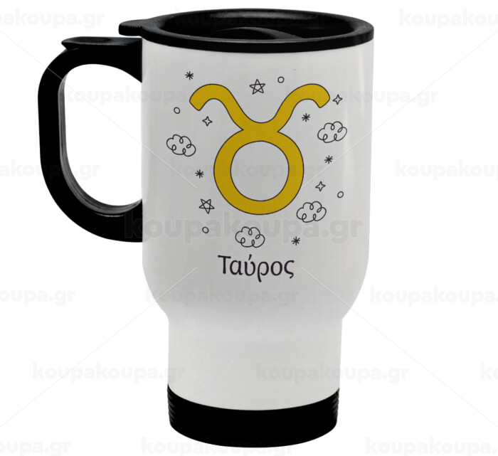 Ζώδια Ταύρος, Stainless steel travel mug with lid, double wall white 450ml