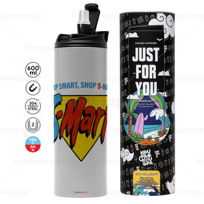 Eco friendly 600ml thermal cup with a metallic reusable straw. Enjoy your favorite beverage at any moment in this unique eco-friendly thermos. It maintains the temperature for several hours and is made from stainless steel. Suitable for both hot and cold beverages. It comes with a cleaning brush for the straw.
