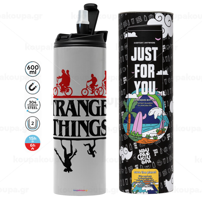 Stranger Things upside down, Tumbler stainless steel GREY 600ml