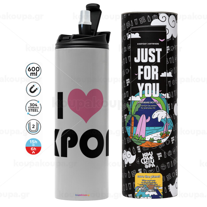 I Love KPOP, Tumbler stainless steel GREY 600ml