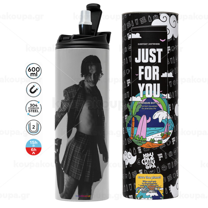 Maneskin Damiano David, Tumbler stainless steel GREY 600ml