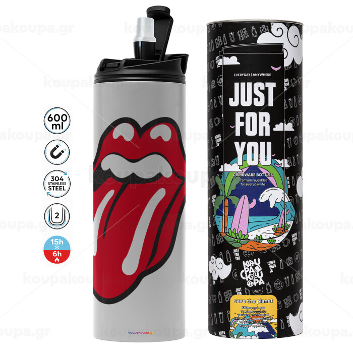 Rolling Stones Kiss, Tumbler stainless steel GREY 600ml