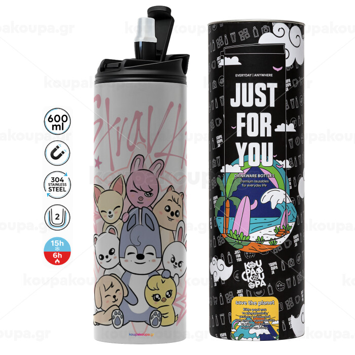 Stray Kids Pink, Tumbler stainless steel GREY 600ml