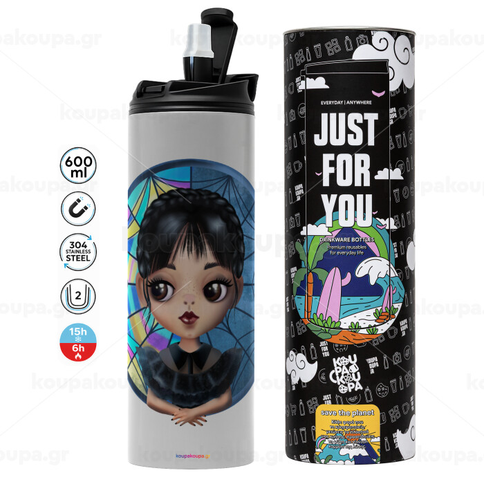 Wednesday big eyes, Tumbler stainless steel GREY 600ml