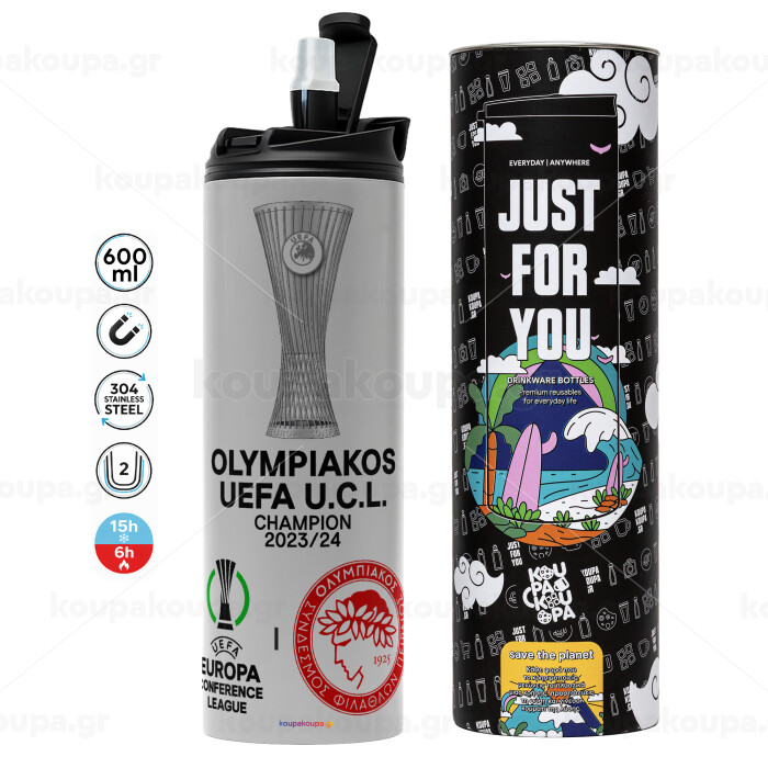 Olympiacos UEFA Europa Conference League Champion 2023/24, Tumbler stainless steel GREY 600ml