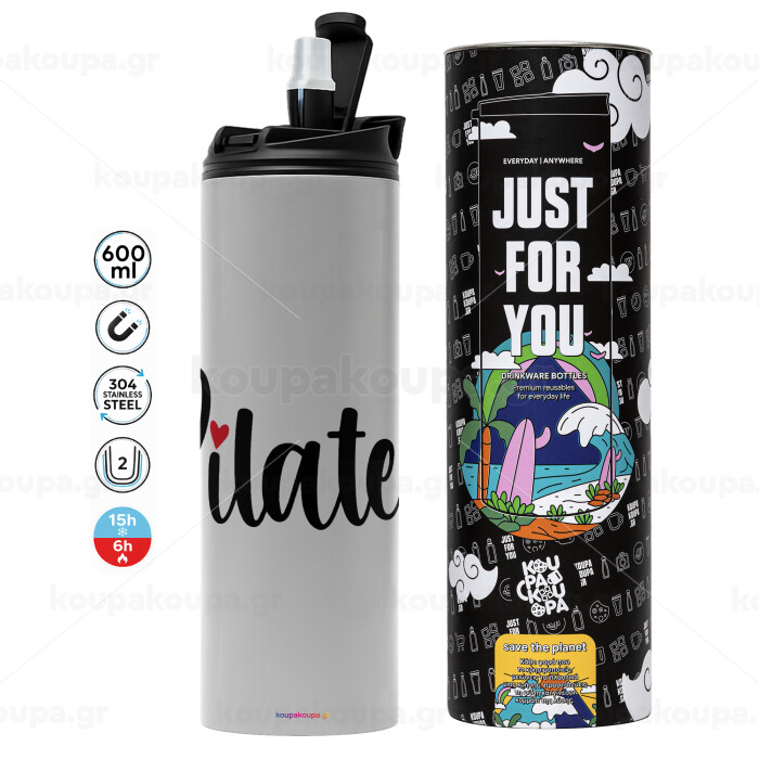 Pilates love, Tumbler stainless steel GREY 600ml