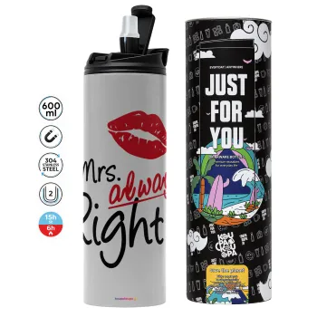 Mrs always right kiss, Tumbler stainless steel GREY 600ml