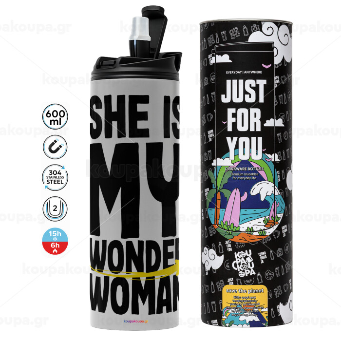 She is my wonder woman, Tumbler stainless steel GREY 600ml