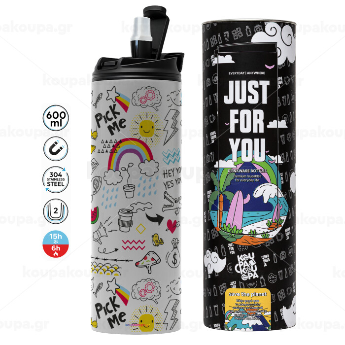 Doodle kids, Tumbler stainless steel GREY 600ml