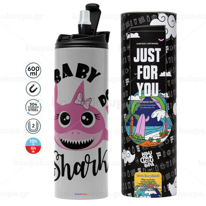 Baby Shark (girl), Tumbler stainless steel GREY 600ml