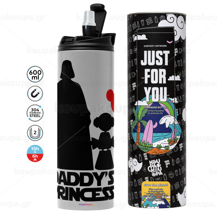Daddy's princess, Tumbler stainless steel GREY 600ml