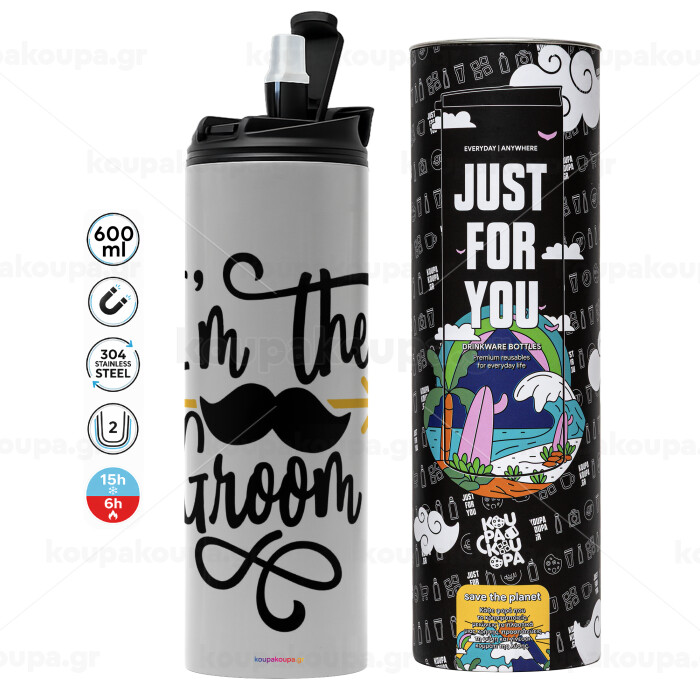 I'm the groom mustache, Tumbler stainless steel GREY 600ml