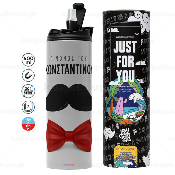 Ο νονός μου, μουστάκι με παπιγιόν, Tumbler stainless steel GREY 600ml