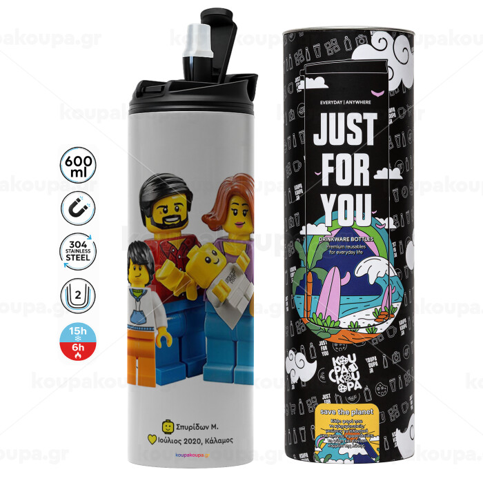 Τύπου Lego family, Tumbler stainless steel GREY 600ml