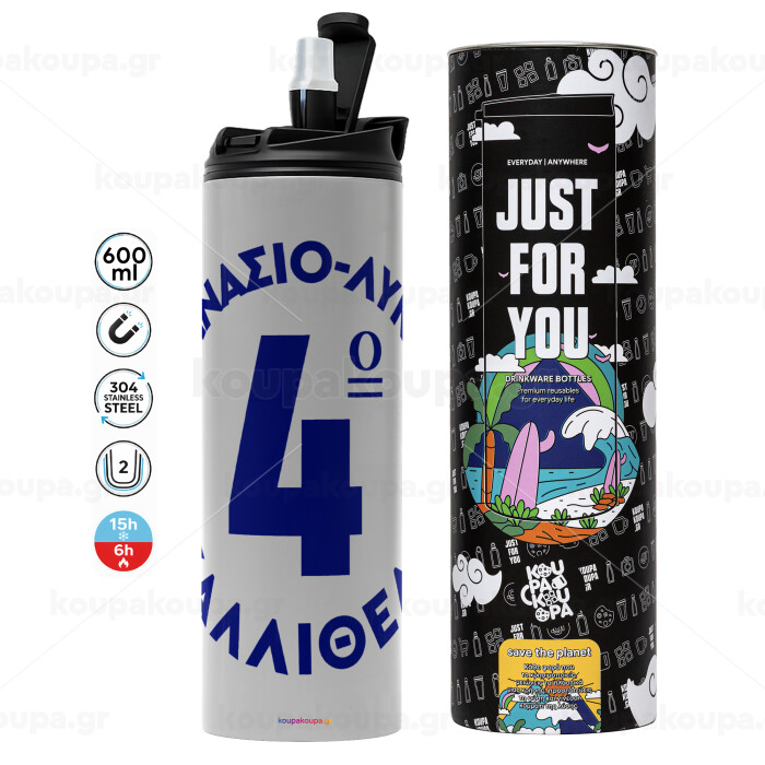 Έμβλημα Σχολικό μπλε κλασικό, Tumbler stainless steel GREY 600ml