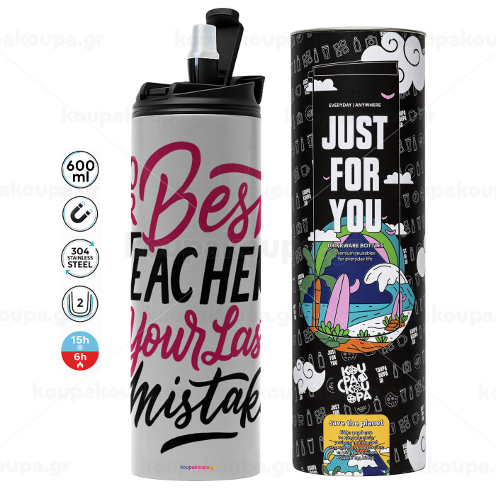 Typography quotes your best teacher is your last mistake, Tumbler stainless steel GREY 600ml