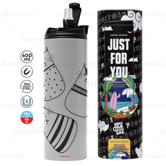 Eco friendly 600ml thermal cup with a metallic reusable straw. Enjoy your favorite beverage at any moment in this unique eco-friendly thermos. It maintains the temperature for several hours and is made from stainless steel. Suitable for both hot and cold beverages. It comes with a cleaning brush for the straw.