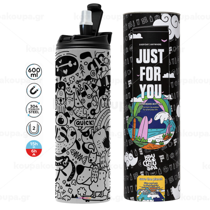 DOG pattern, Tumbler stainless steel GREY 600ml