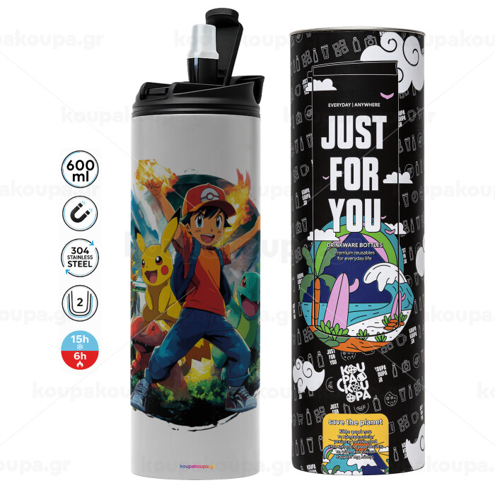 Ash Ketchum & Pikachu, Tumbler stainless steel GREY 600ml