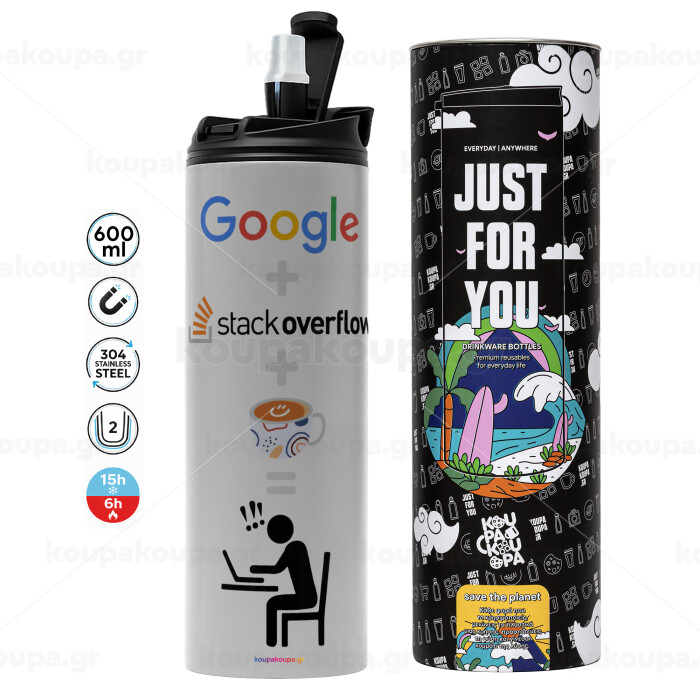 Google + Stack overflow + Coffee, Tumbler stainless steel GREY 600ml