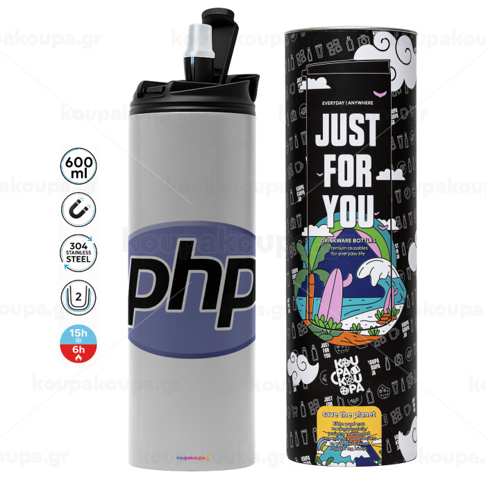 Eco friendly 600ml thermal cup with a metallic reusable straw. Enjoy your favorite beverage at any moment in this unique eco-friendly thermos. It maintains the temperature for several hours and is made from stainless steel. Suitable for both hot and cold beverages. It comes with a cleaning brush for the straw.
