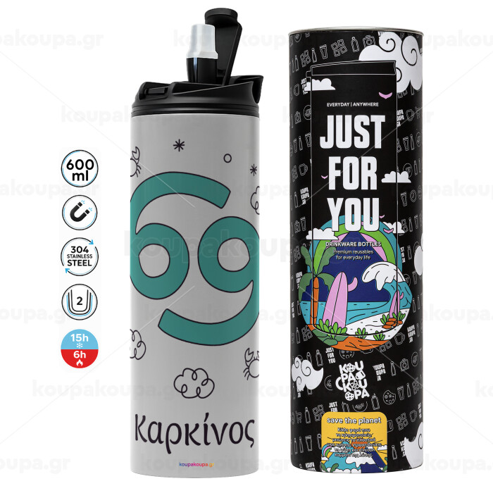 Ζώδια Καρκίνος, Tumbler stainless steel GREY 600ml