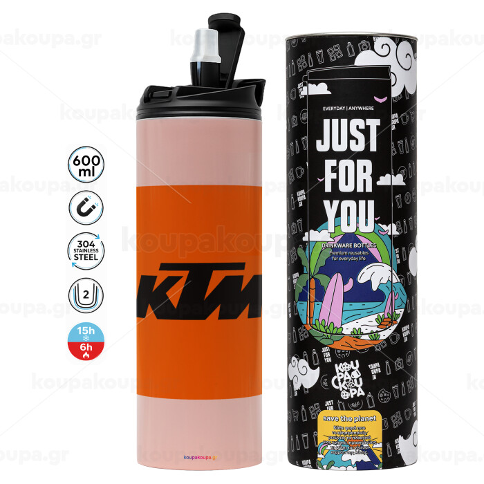 Eco friendly 600ml thermal cup with a metallic reusable straw. Enjoy your favorite beverage at any moment in this unique eco-friendly thermos. It maintains the temperature for several hours and is made from stainless steel. Suitable for both hot and cold beverages. It comes with a cleaning brush for the straw.