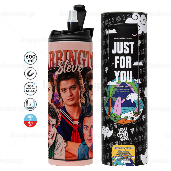 Steve Harrington, Stranger Things, Tumbler stainless steel PINK 600ml