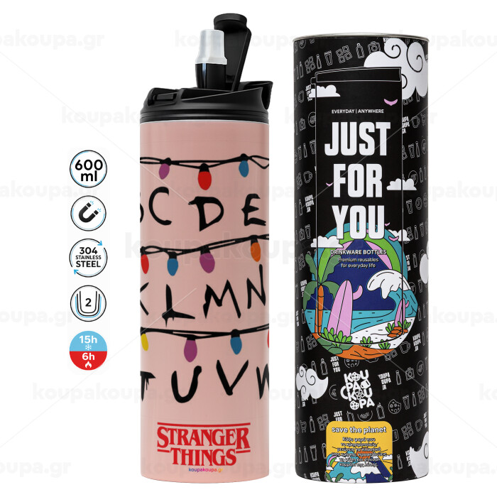 Stranger Things ABC, Tumbler stainless steel PINK 600ml