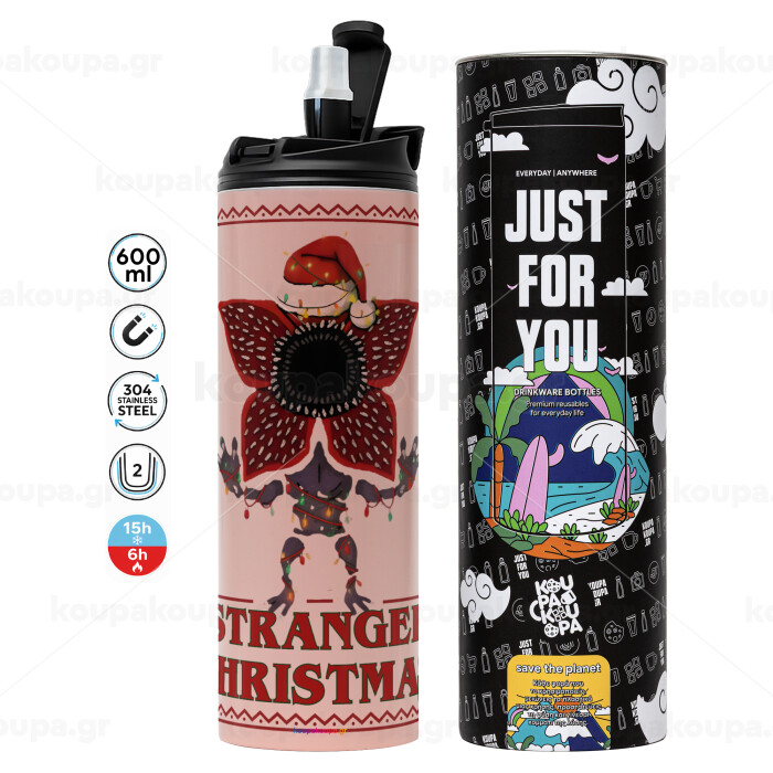 Stranger Things Christmas, Tumbler stainless steel PINK 600ml