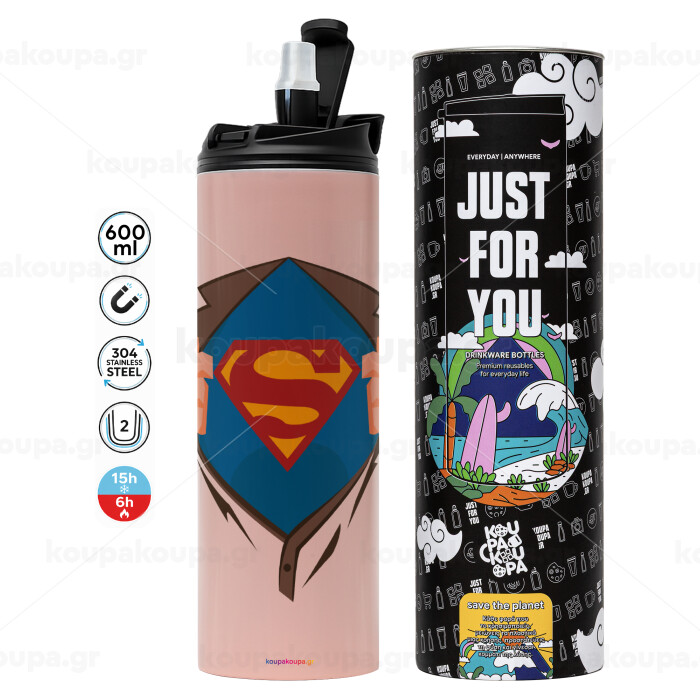 Superman hands, Tumbler stainless steel PINK 600ml