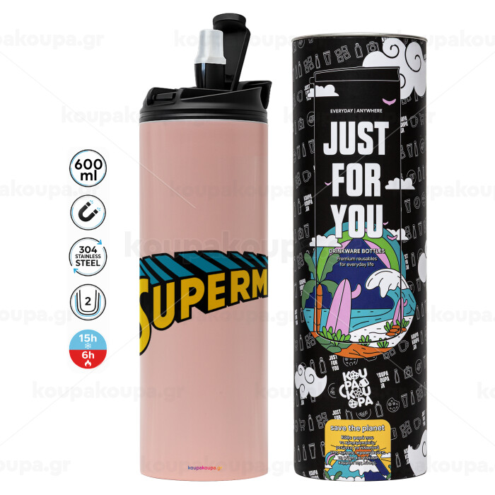 Superman vintage, Tumbler stainless steel PINK 600ml