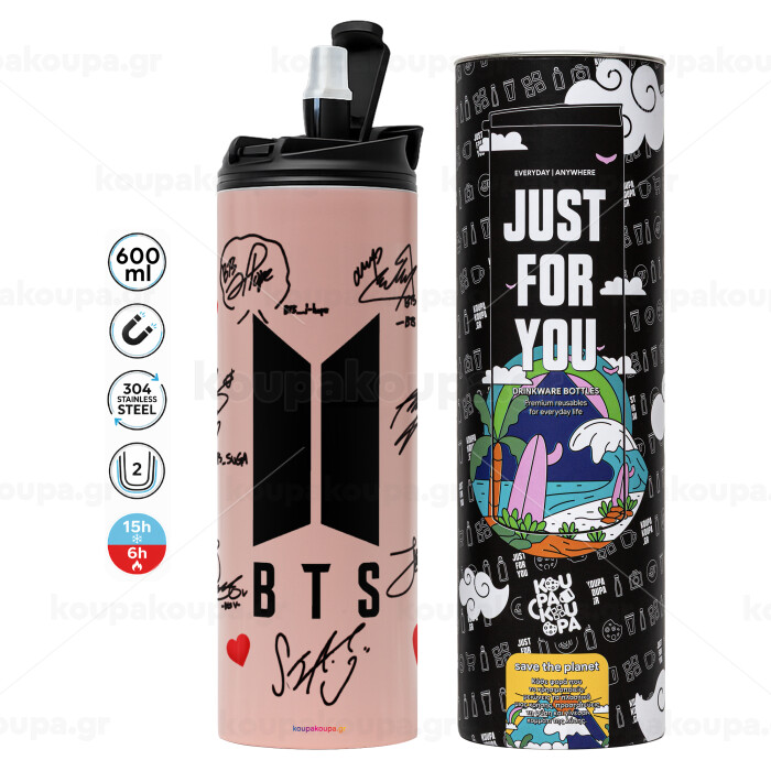 BTS signs, Tumbler stainless steel PINK 600ml
