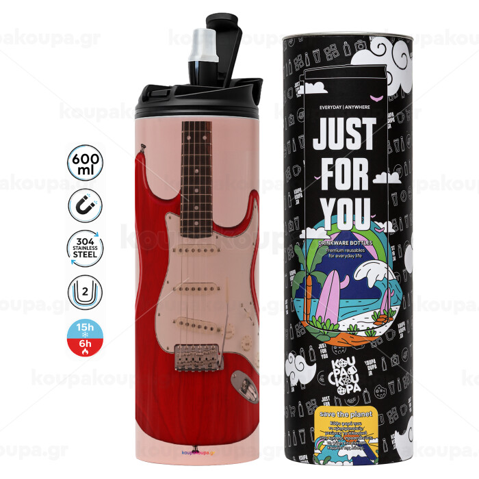 Guitar stratocaster, Tumbler stainless steel PINK 600ml