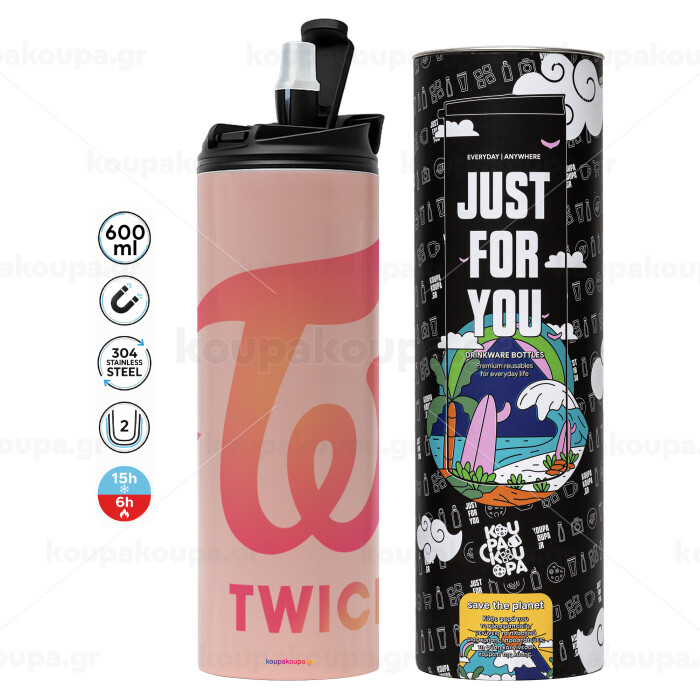 Eco friendly 600ml thermal cup with a metallic reusable straw. Enjoy your favorite beverage at any moment in this unique eco-friendly thermos. It maintains the temperature for several hours and is made from stainless steel. Suitable for both hot and cold beverages. It comes with a cleaning brush for the straw.