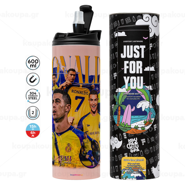 Cristiano Ronaldo Al Nassr, Tumbler stainless steel PINK 600ml