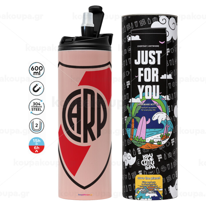 Eco friendly 600ml thermal cup with a metallic reusable straw. Enjoy your favorite beverage at any moment in this unique eco-friendly thermos. It maintains the temperature for several hours and is made from stainless steel. Suitable for both hot and cold beverages. It comes with a cleaning brush for the straw.