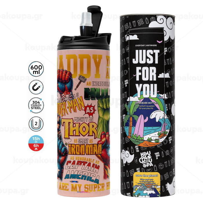 Daddy You Are my Hero, Tumbler stainless steel PINK 600ml