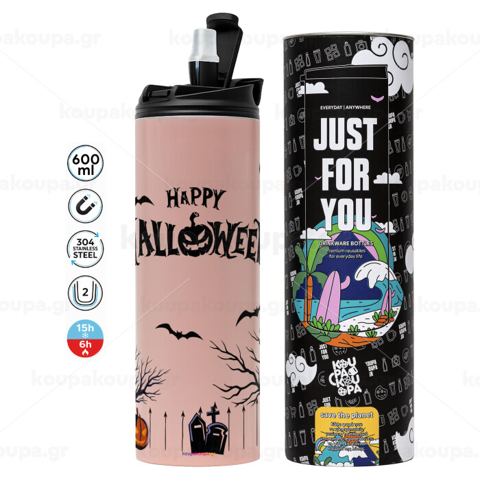 Happy Halloween cemetery, Tumbler stainless steel PINK 600ml