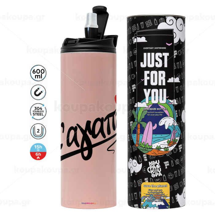 Σ΄ αγαπώ!!!, Tumbler stainless steel PINK 600ml