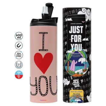 I Love You small dots, Tumbler stainless steel PINK 600ml