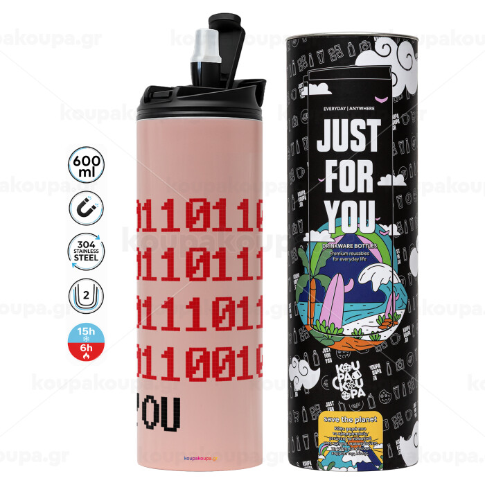 I .... YOU, binary secret MSG, Tumbler stainless steel PINK 600ml