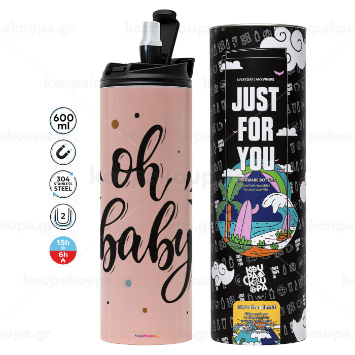 Eco friendly 600ml thermal cup with a metallic reusable straw. Enjoy your favorite beverage at any moment in this unique eco-friendly thermos. It maintains the temperature for several hours and is made from stainless steel. Suitable for both hot and cold beverages. It comes with a cleaning brush for the straw.