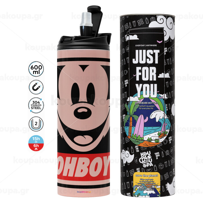 Oh boy μίκυ, Tumbler stainless steel PINK 600ml