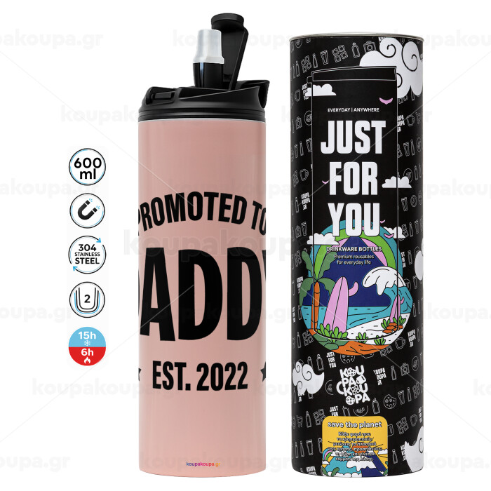Promoted to Daddy, Tumbler stainless steel PINK 600ml