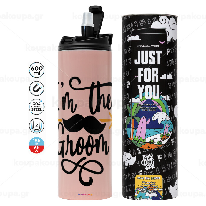 I'm the groom mustache, Tumbler stainless steel PINK 600ml
