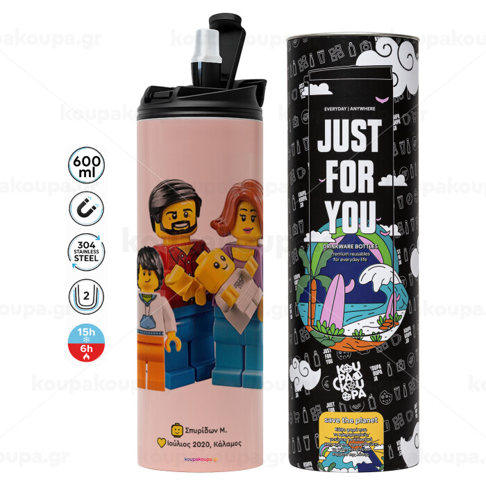 Τύπου Lego family, Tumbler stainless steel PINK 600ml