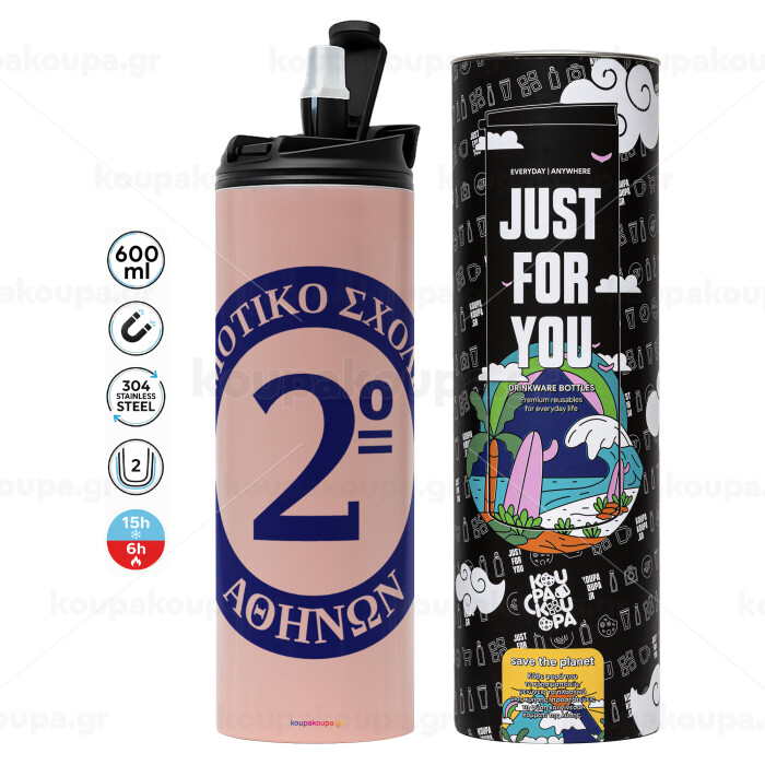 Έμβλημα Σχολικό μπλε, Tumbler stainless steel PINK 600ml