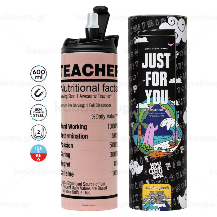 teacher nutritional facts, Tumbler stainless steel PINK 600ml