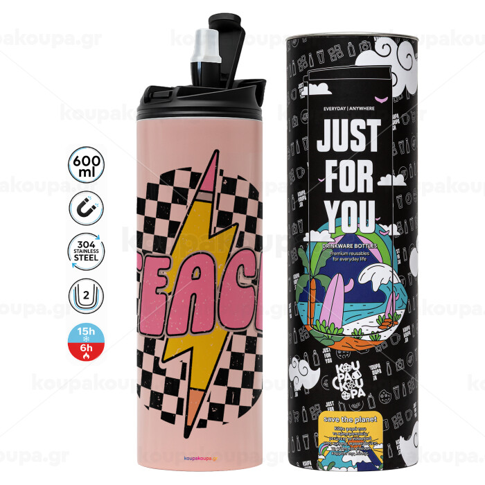 Eco friendly 600ml thermal cup with a metallic reusable straw. Enjoy your favorite beverage at any moment in this unique eco-friendly thermos. It maintains the temperature for several hours and is made from stainless steel. Suitable for both hot and cold beverages. It comes with a cleaning brush for the straw.